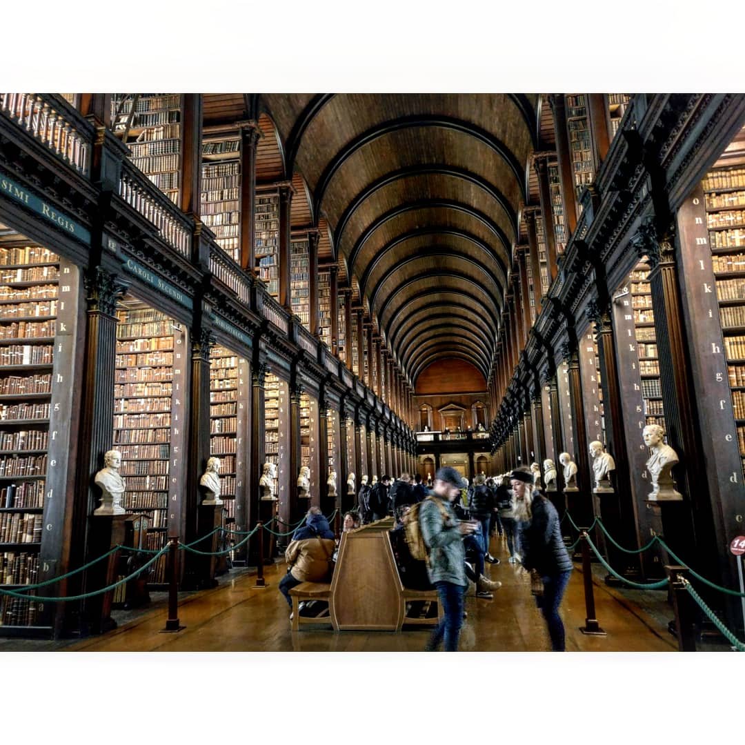 We liepen richting het Trinity College waar zich een hele grote bibliotheek bevindt, die een mogelijke inspiratiebron was voor de Harry Potter films. Deze bibliotheek wordt ‘the long room’ genoemd. Ikzelf heb voor de rest niks met boeken maar het was heel indrukwekkend hoe groot deze bibliotheek was! Kasten die tot het plafond liepen, twee verdiepingen vol met oude boeken en busten van bekende filosofen.