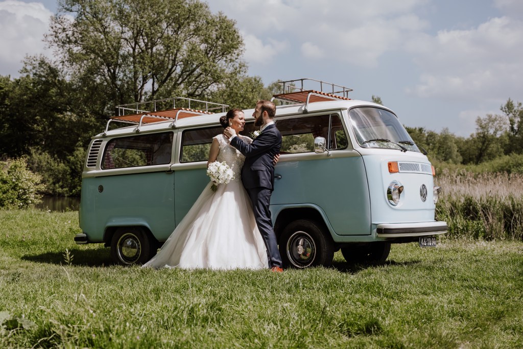 Na een aantal kiekjes was het ineens 3 uur, dus we moesten snel met het busje naar de trouwlocatie racen die een paar meter verderop lag aan het water. Nadat we afgezet werden door Geert, was het tijd om afscheid te nemen van hem en het Volkswagenbusje.