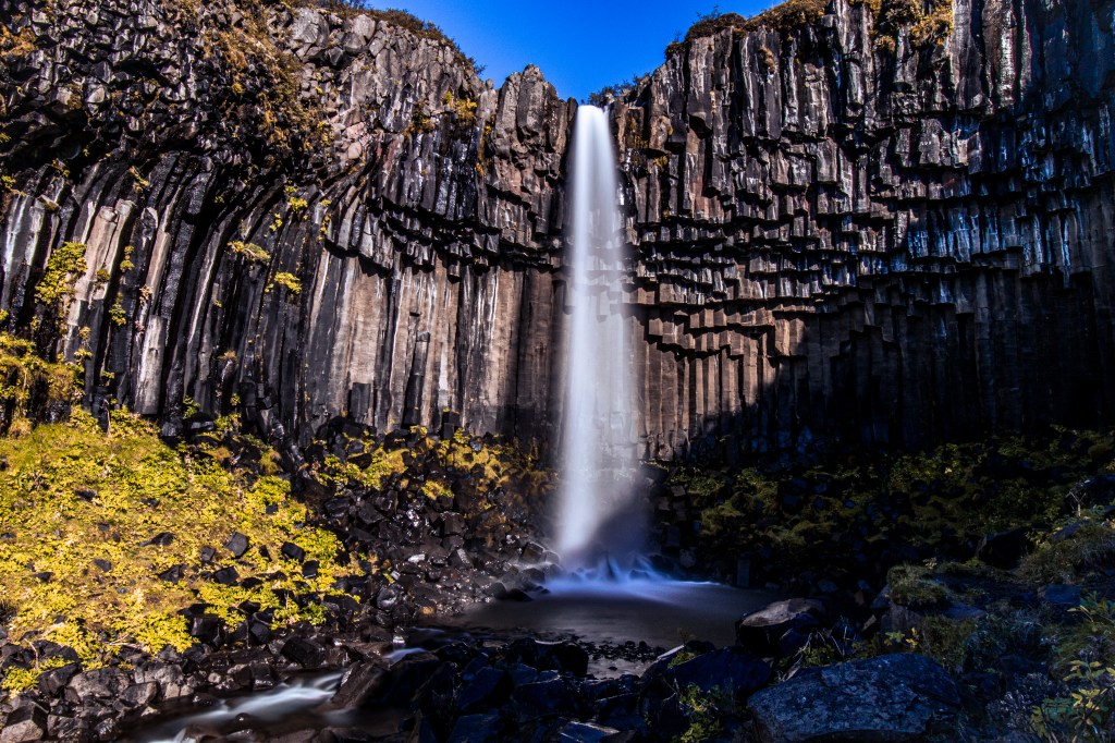 Omdat we wisten dat we op de terugweg dezelfde route zouden nemen hadden we bewust wat stops overgeslagen om die te kunnen doen als we de weg terug zouden nemen. Een van die stops was de wandeling richting de Svartifoss! Dit is een van die watervallen die er wat meer uitspringt dan de gemiddelde waterval. Wat deze waterval speciaal maakt is dat hij precies over een vulkanisch gevormde klif naar beneden loopt. Dit met een perfect geplaatst bruggetje en uitkijkpunt zorgt er ook nog eens voor dat je er hele mooie foto’s van kan maken!